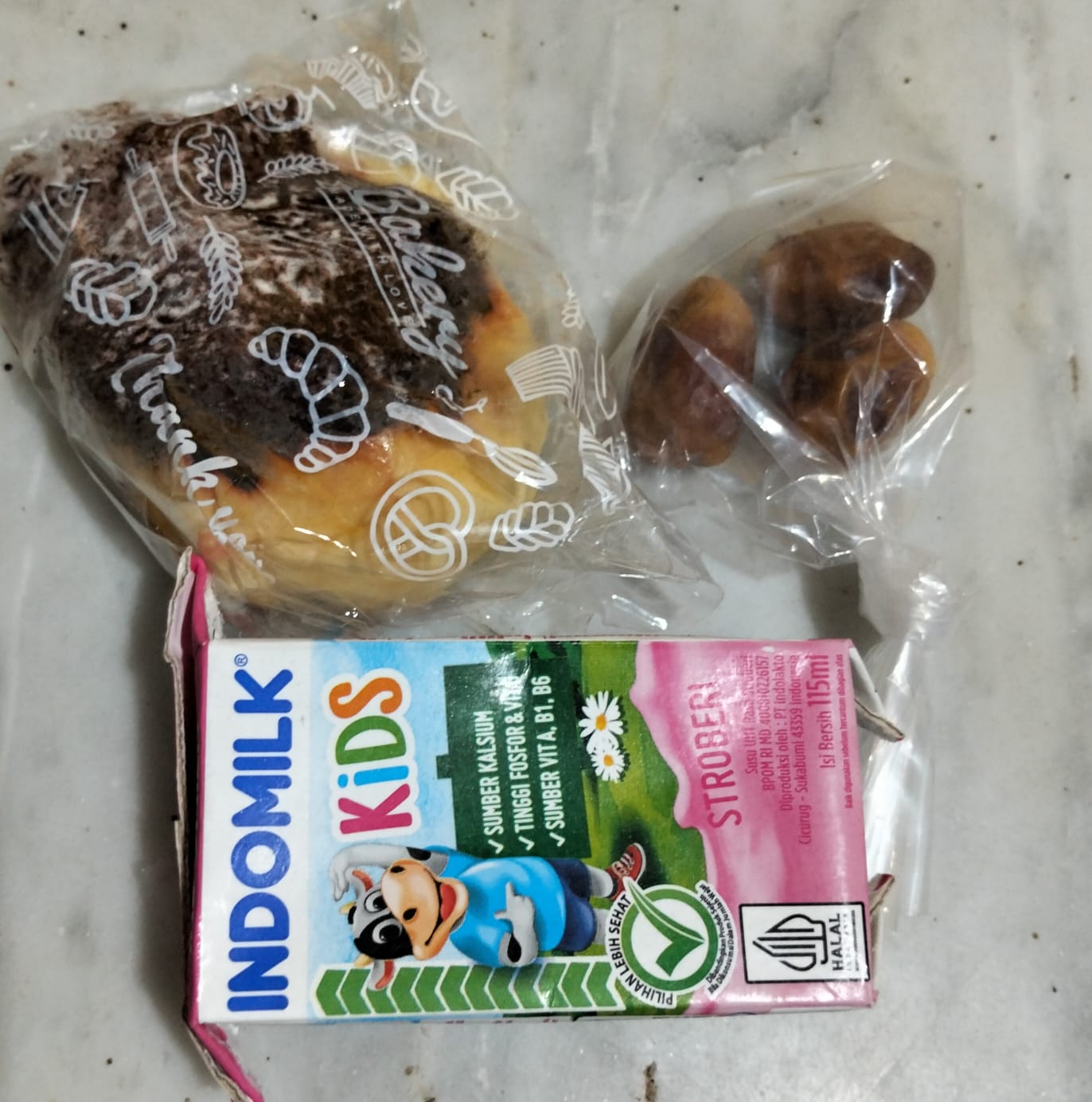 “kalo perkiraan saya bang, Roti kaya gitu biasanya di warung cuma seribu, Telor paling cuma 1.500, karena 1 karpet 54.000, sedangkan susu mungkin 2.500 an lah, kurma 3 biji ini yang lucu bisa dibilang ngegenapin aja.” ujar N sambil tertawa lebar.