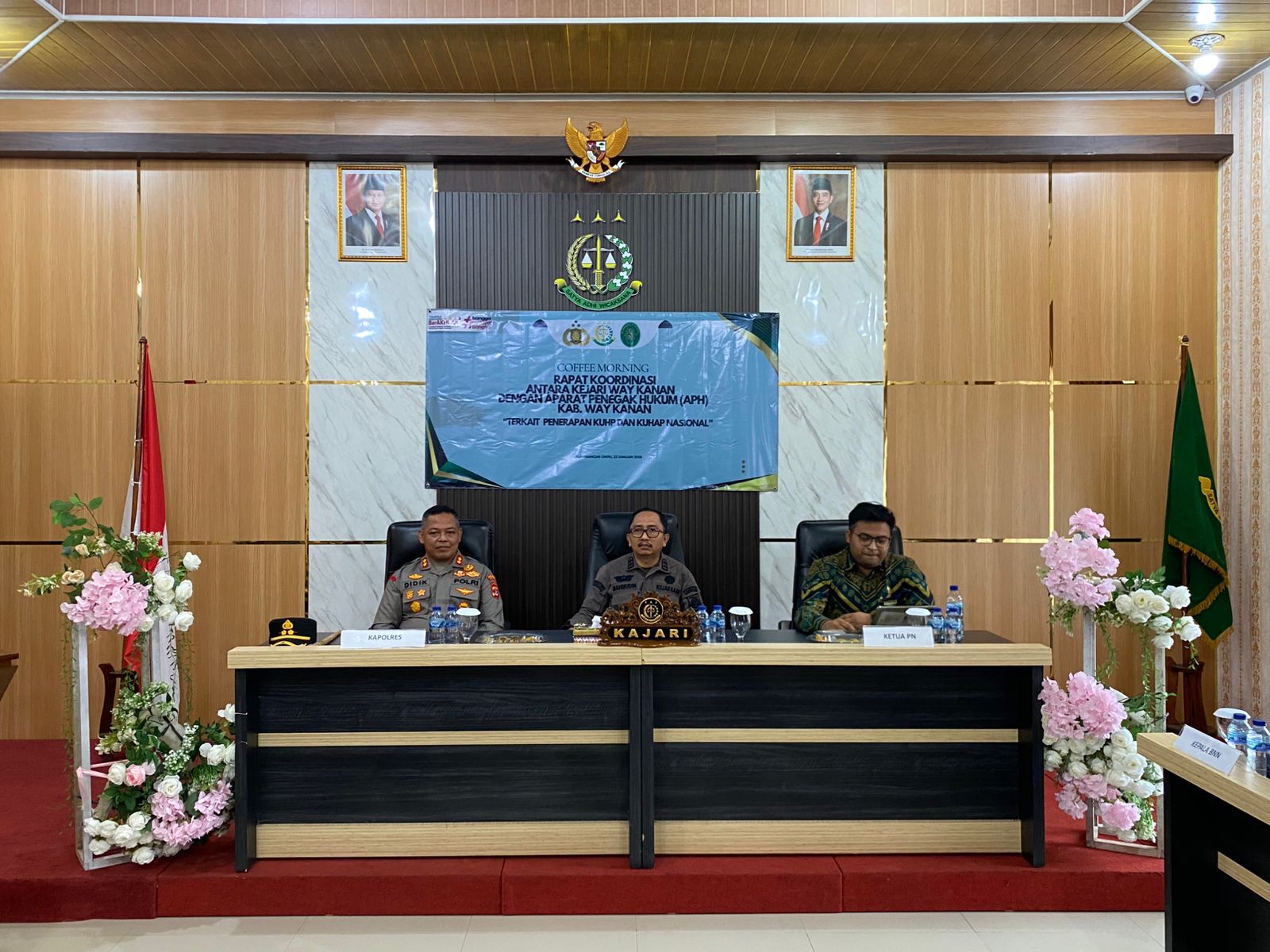 Dalam konteks tersebut, Kejaksaan Negeri Way Kanan memfasilitasi kegiatan Coffee Morning dalam rangka “Rapat Koordinasi Antara Kejari Way Kanan dengan Aparat Penegak Hukum (APH) Kabupaten Way Kanan”