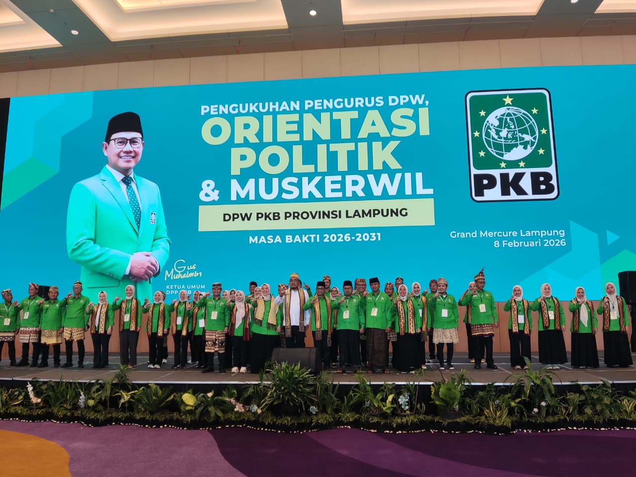 BANDAR LAMPUNG – Dewan Pengurus Wilayah (DPW) Partai Kebangkitan Bangsa (PKB) Lampung untuk periode kepengurusan 2026 hingga 2031 telah dilantik secara resmi. Acara pelantikan dipimpin langsung oleh Ketua Umum PKB, Muhaimin Iskandar, di Ballroom Hotel Grand Mercure, pada Minggu (8/2/2026).