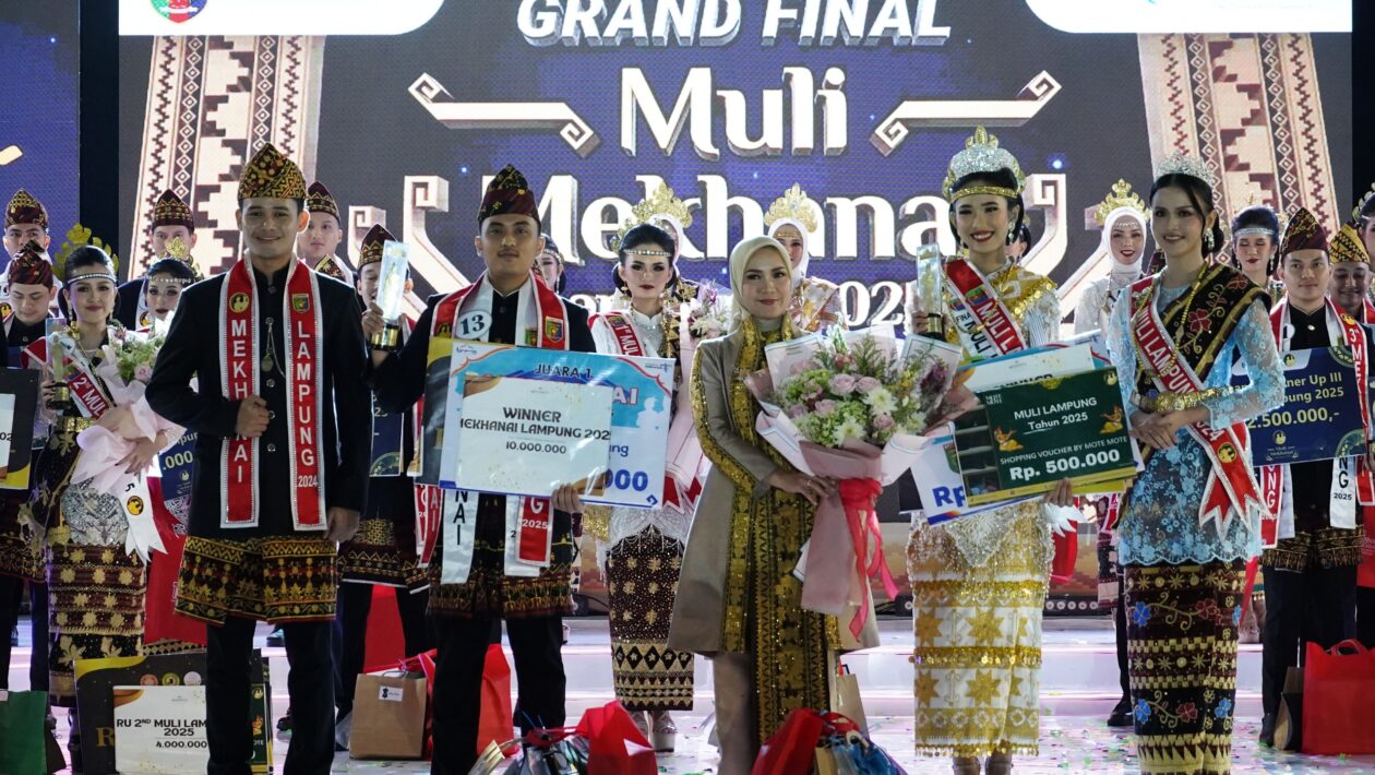 Setelah melalui beberapa tahap penilaian, keluar sebagai Pemenang Muli Mekhanai Provinsi Lampung Tahun 2025, diraih oleh Muli asal Kota Bandar Lampung Marcheline Aurely dan Mekhanai asal Kabupaten Tulang Bawang Muhammad Adit Bintang Hartahta.