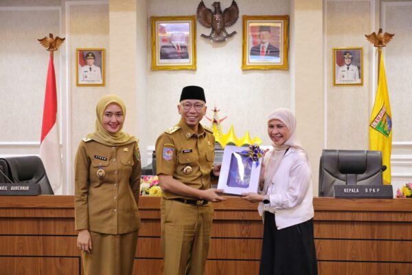 BANDAR LAMPUNG- Gubernur Lampung Rahmat Mirzani Djausal dan Wakil Gubernur Jihan Nurlela menerima Laporan Eksekutif Daerah (LED) Semester II Tahun 2024 yang disampaikan oleh Kepala Perwakilan BPKP Provinsi Lampung, di Ruang Rapat Utama, Kantor Gubernur Lampung, Bandarlampung, Senin (24/3/2025).