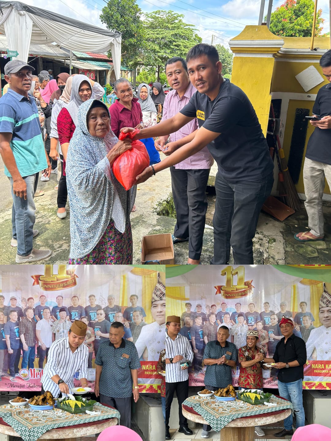 Dalam kegiatan tersebut, rangkaian acara berlangsung penuh kehangatan dan kekeluargaan. Selain pembagian sembako kepada warga sebagai bentuk kepedulian sosial, acara juga diisi dengan pemotongan tumpeng sebagai simbol rasa syukur atas perjalanan 11 tahun SKH Medinas Lampung dalam mengawal informasi dan pembangunan di Provinsi Lampung.