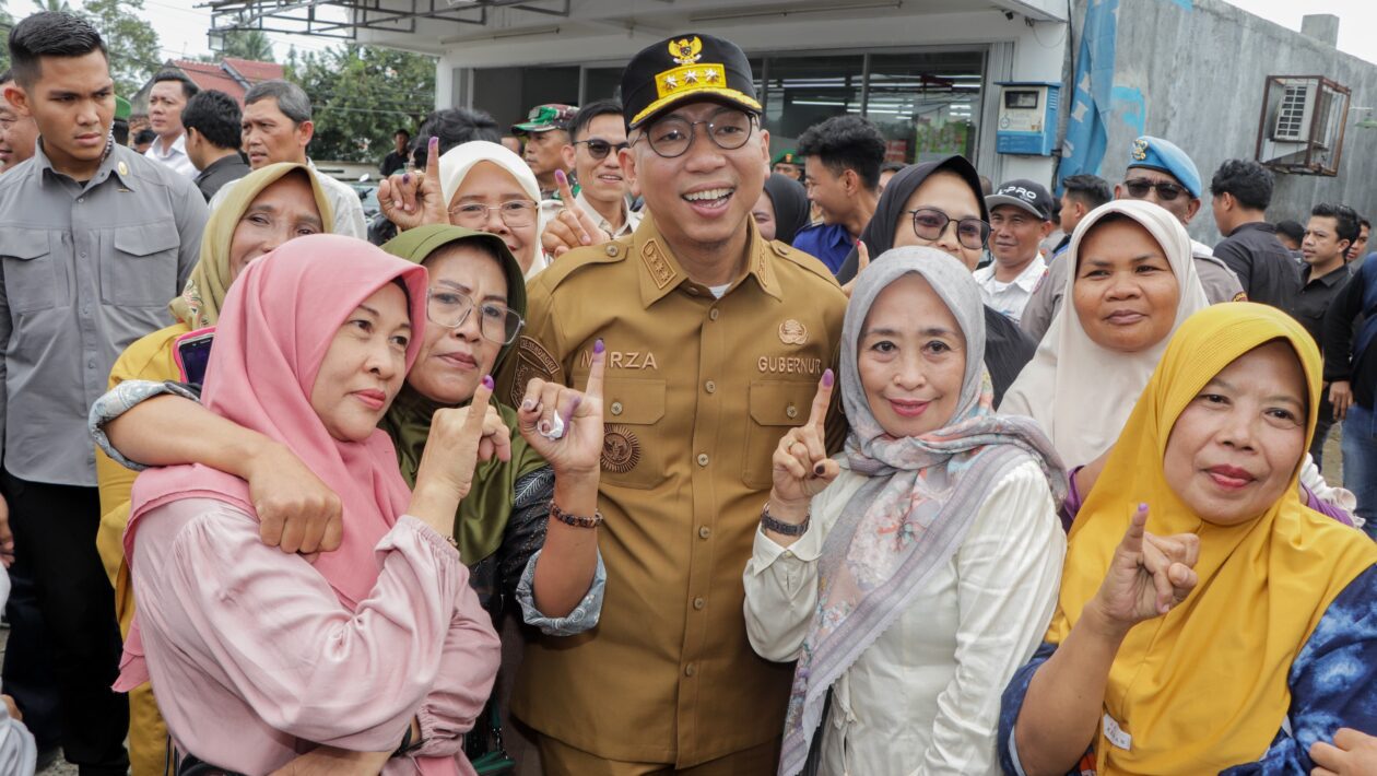 “Alhamdulillah, tadi kami melihat suasananya berlangsung dengan aman, lancar dan damai. Partisipasi masyarakat cukup tinggi, dari sekitar 530-an pemilih di TPS ini, sudah sekitar 60 persen yang menggunakan hak pilihnya. Ini menunjukkan semangat demokrasi warga cukup baik,” ujar Gubernur Mirza saat meninjau TPS 2 Bagelen.