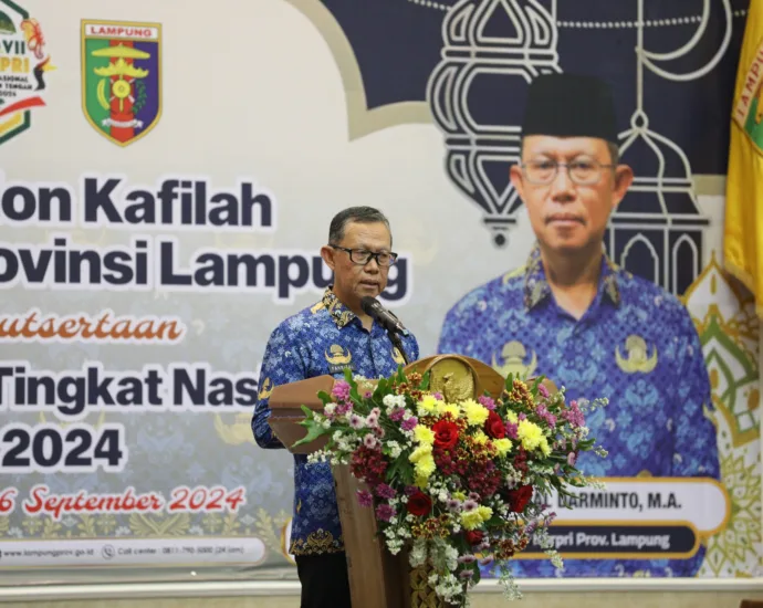 BANDARLAMPUNG – Ketua Dewan Pengurus Korps Pegawai Republik Indonesia (Korpri) Provinsi Lampung Fahrizal Darminto membuka Seleksi Calon Kafilah MTQ Korpri Tingkat Nasional VII, di Balai Keratun Lt. III, Kantor Gubernur Lampung, Bandarlampung, Kamis (26/09/2024).