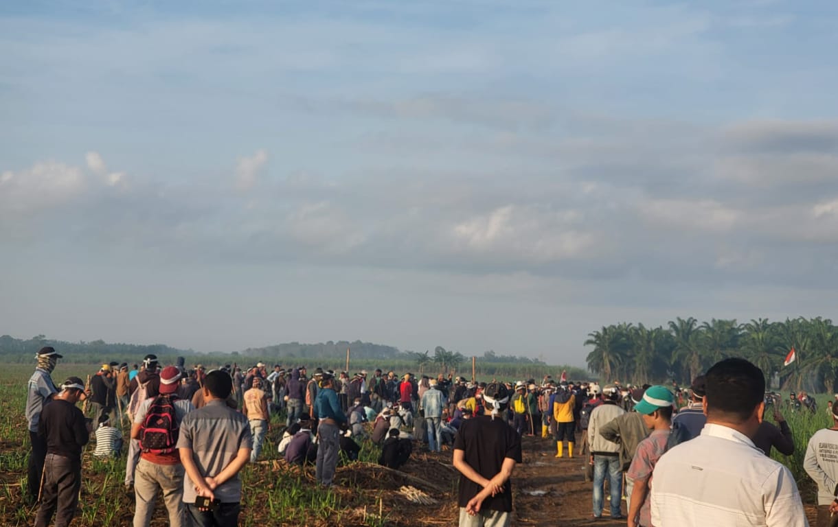 Lampung Tengah -Masyarakat dari tiga kampung di Kecamatan Anak Tuha, Kabupaten Lampung Tengah, menanam di lahan PT Bumi Sentosa Abadi (BSA) pada Minggu, 17 Agustus 2025. Mereka mengklaim lahan seluas 807 hektare tersebut merupakan milik adat.