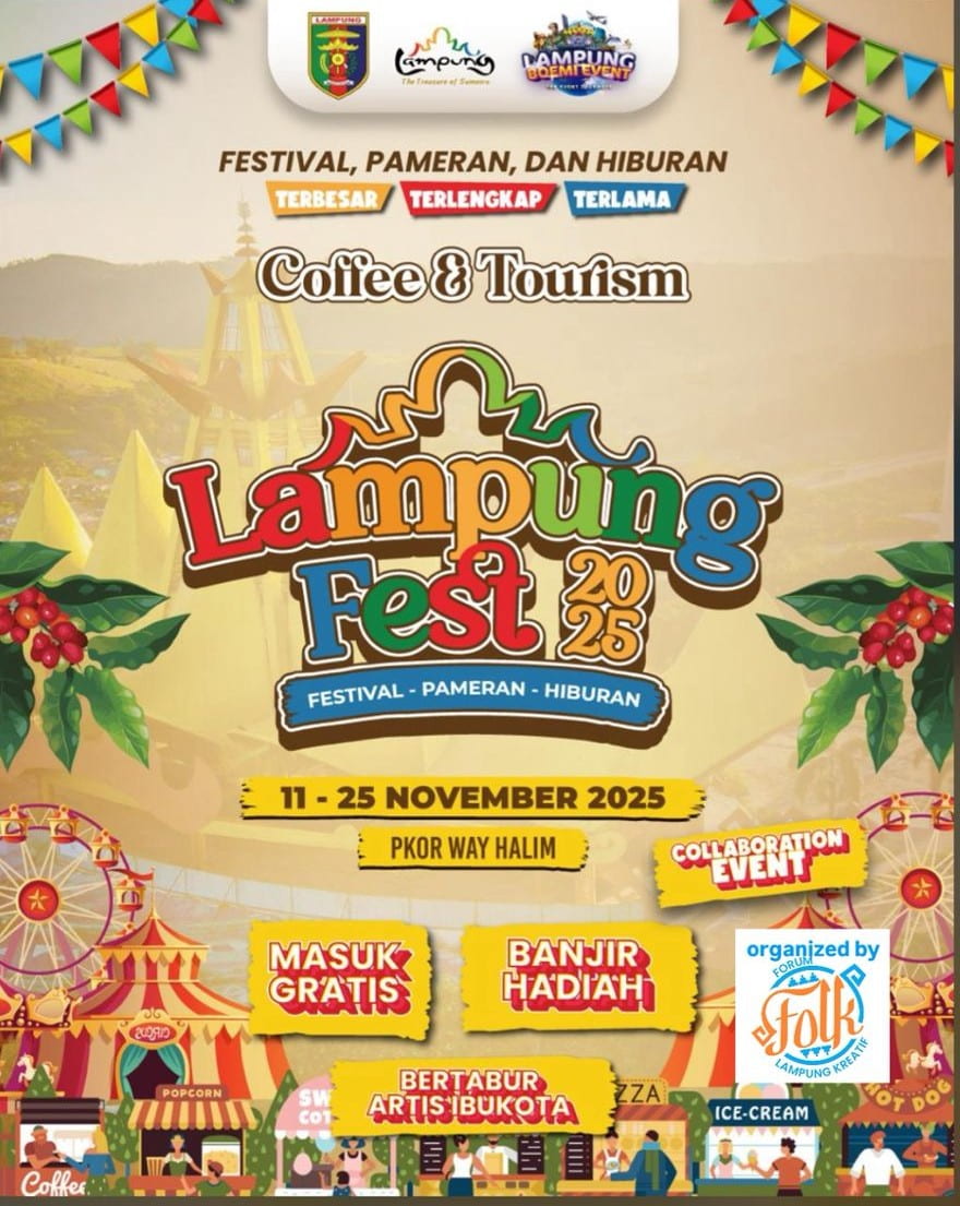 Bandar Lampung (B+62) – Lampung Fest akan hadir pada 11-25 November 2025 di PKOR Way Halim, Bandar Lampung. Hadir dengan format berbeda, festival ini jadi panggung kolaborasi masyarakat, komunitas kreatif, dan dunia usaha untuk menggerakkan pariwisata Lampung.