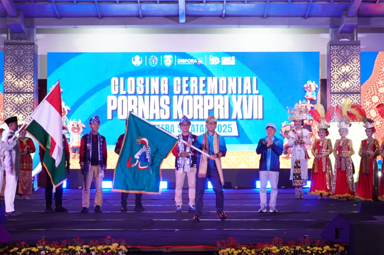 LAMPUNG (B+62) – Provinsi Lampung resmi ditunjuk menjadi tuan rumah Pekan Olahraga Nasional (Pornas) Korpri XVIII Tahun 2027. Penetapan ini ditandai dengan penyerahan pataka atau bendera estafet dari Gubernur Sumatera Selatan, Herman Deru, kepada Gubernur Lampung Rahmat Mirzani Djausal dalam upacara penutupan Pornas Korpri XVII di Palembang, Sabtu (11/10/2025).