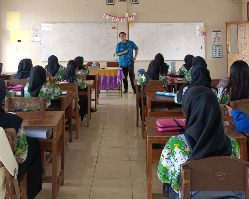 Sementara di kelas X MPLB1, mahasiswa membantu mengajar dasar-dasar pemrograman menggunakan bahasa Python. Siswa belajar membuat program sederhana untuk menghitung bangun datar sebagai pengenalan logika pemrograman, sekaligus memahami konsep penyeleksian (selection) yang melatih kemampuan analisis dan pemecahan masalah berbasis algoritma.