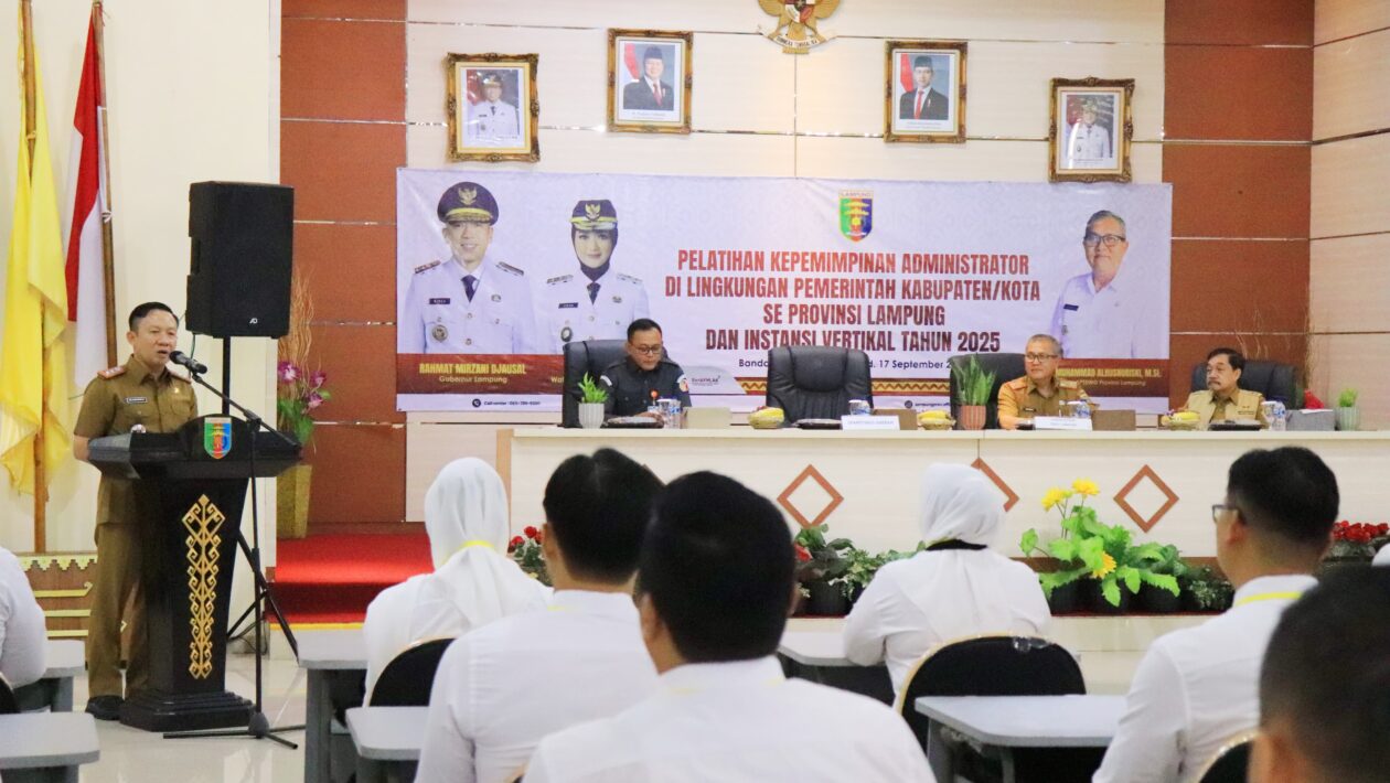LAMSEL – Gubernur Lampung diwakili Sekretaris Daerah Provinsi Lampung, Marindo Kurniawan membuka Pelatihan Kepemimpinan Administrator di lingkungan Pemerintah Kabupaten/Kota se-Provinsi Lampung dan Instansi Vertikal Tahun 2025, bertempat di Aula Badan Pengembangan Sumber Daya Manusia (BPSDM) Provinsi Lampung, Selasa (24/6/2025).