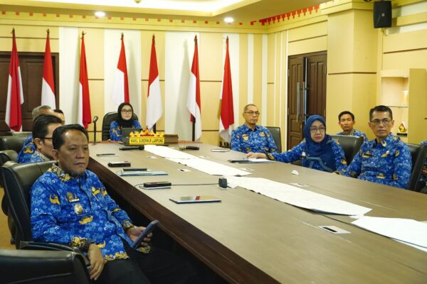 BANDAR LAMPUNG – Wakil Gubernur Lampung, Jihan Nurlela mengikuti Rapat Koordinasi Penyelenggaraan Pemerintahan Daerah dan Penandatanganan Nota Kesepahaman Tentang Sinergi Tugas dan Fungsi di Bidang Agraria, Pertanahan, Pemerintahan Dalam Negeri, Kehutanan, Transmigrasi dan Informasi Geospasial, serta Pemeriksaan Kesehatan Gratis dan Implementasi Pembangunan 3 Juta Rumah secara virtual bertempat di Ruang Rapat Sakai Sambayan Kantor Gubernur, Senin (17/03/2025).