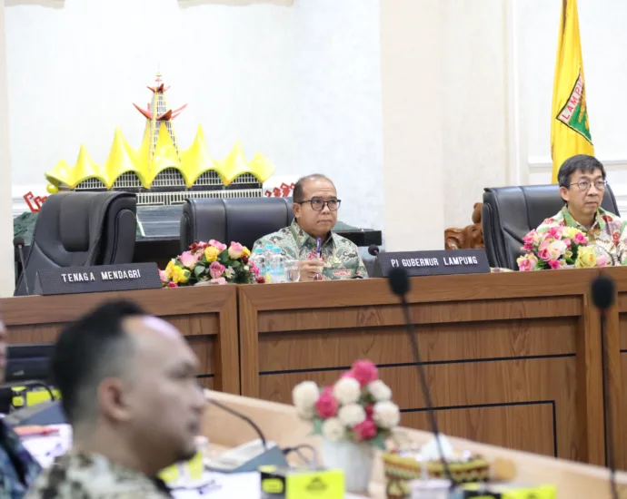 BANDARLAMPUNG – Pj. Gubernur Lampung Samsudin menghadiri rapat Program Strategis Peningkatan Pemahaman Numerasi dengan Metode Pembelajaran Gampang, Asyik dan Menyenangkan (Gasing) di Ruang Rapat Utama, Kantor Gubernur Lampung, Bandarlampung, Kamis (26/9/2024).