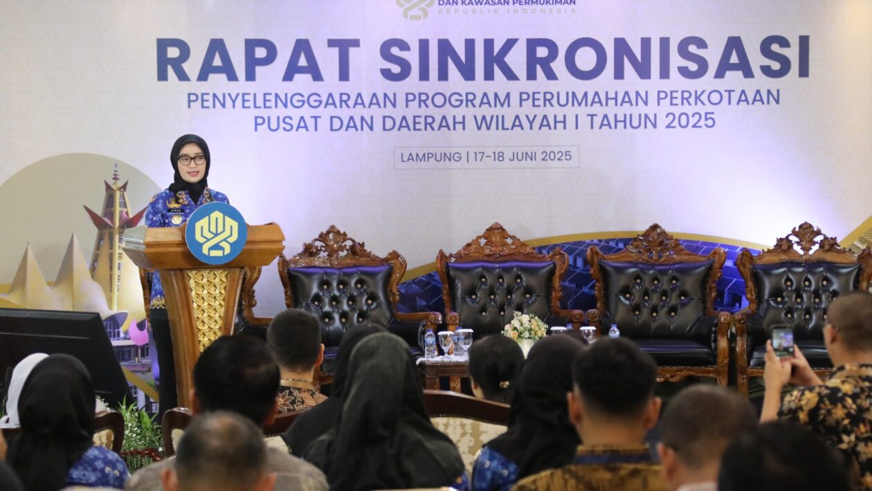 BANDARLAMPUNG- Wakil Gubernur Lampung Jihan Nurlela menghadiri Rapat Sinkronisasi Penyelenggaraan Program Perumahan Perkotaan Pusat dan Daerah Wilayah I Tahun 2025, di Ruang Abung, Balai Keratun, Komplek Kantor Gubernur Lampung, Selasa (17/6/2025).