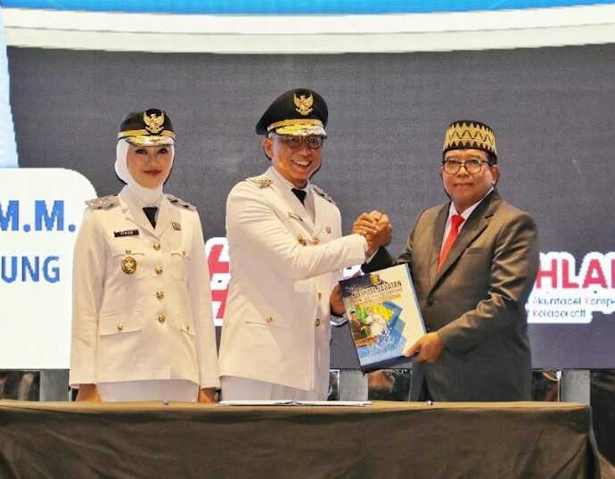 JAKARTA — Gubernur Lampung Rahmat Mirzani Djausal dan mantan Pj. Gubernur Lampung Samsudin melakukan Serah Terima Jabatan di Ballroom Hotel Movenpick, Jakarta, Kamis (20/2/2025). Lalu diikuti Sertijab Ketua TP PKK Provinsi Lampung dari Ibu Maidawati Samsudin kepada Ibu Purnama Wulan Sari Mirzani Djausal.