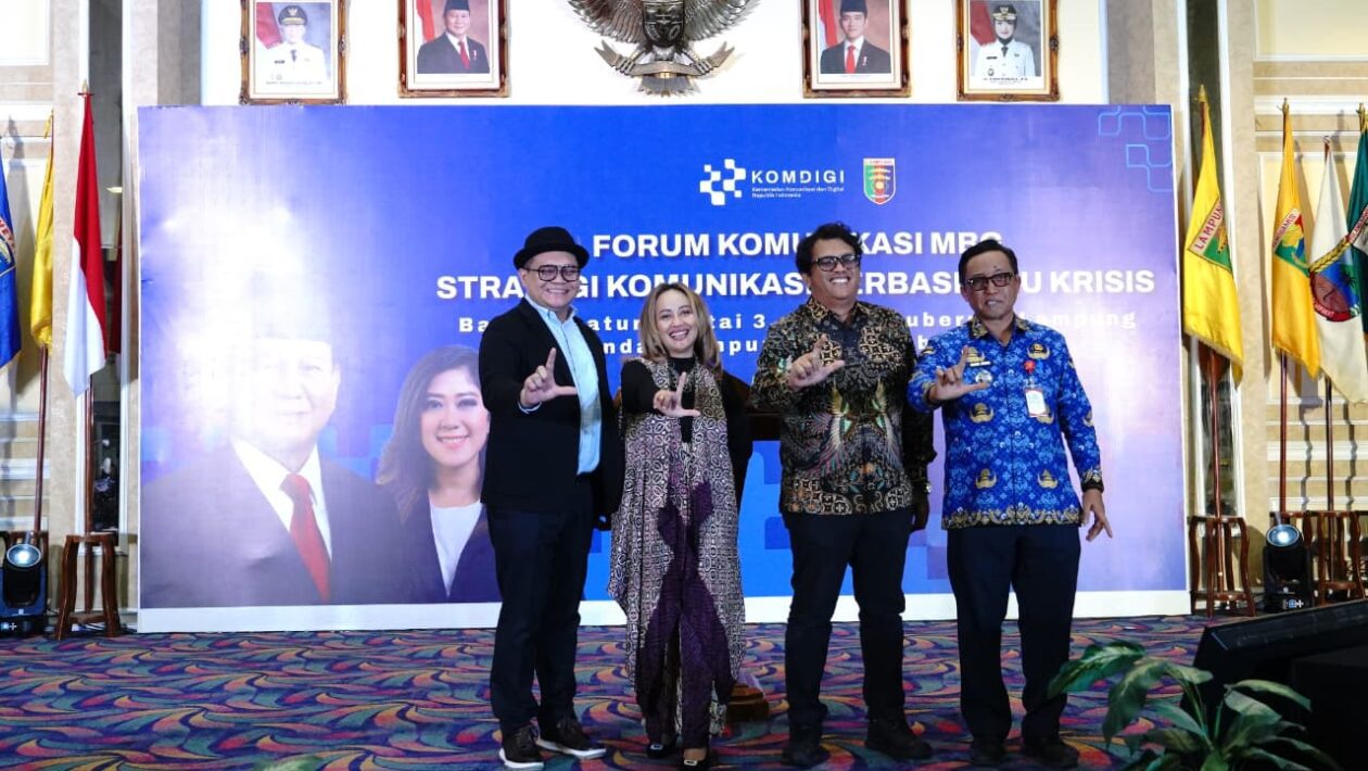BANDAR LAMPUNG – Pemerintah Provinsi Lampung bersinergi bersama Kementerian Komunikasi dan Digital (Kemenkomdigi) Republik Indonesia menggelar Forum Komunikasi MBG: Strategi Komunikasi Berbasis Isu Krisis di Balai Keratun, Lantai 3 Kantor Gubernur Lampung, Jumat (17/10/2025).