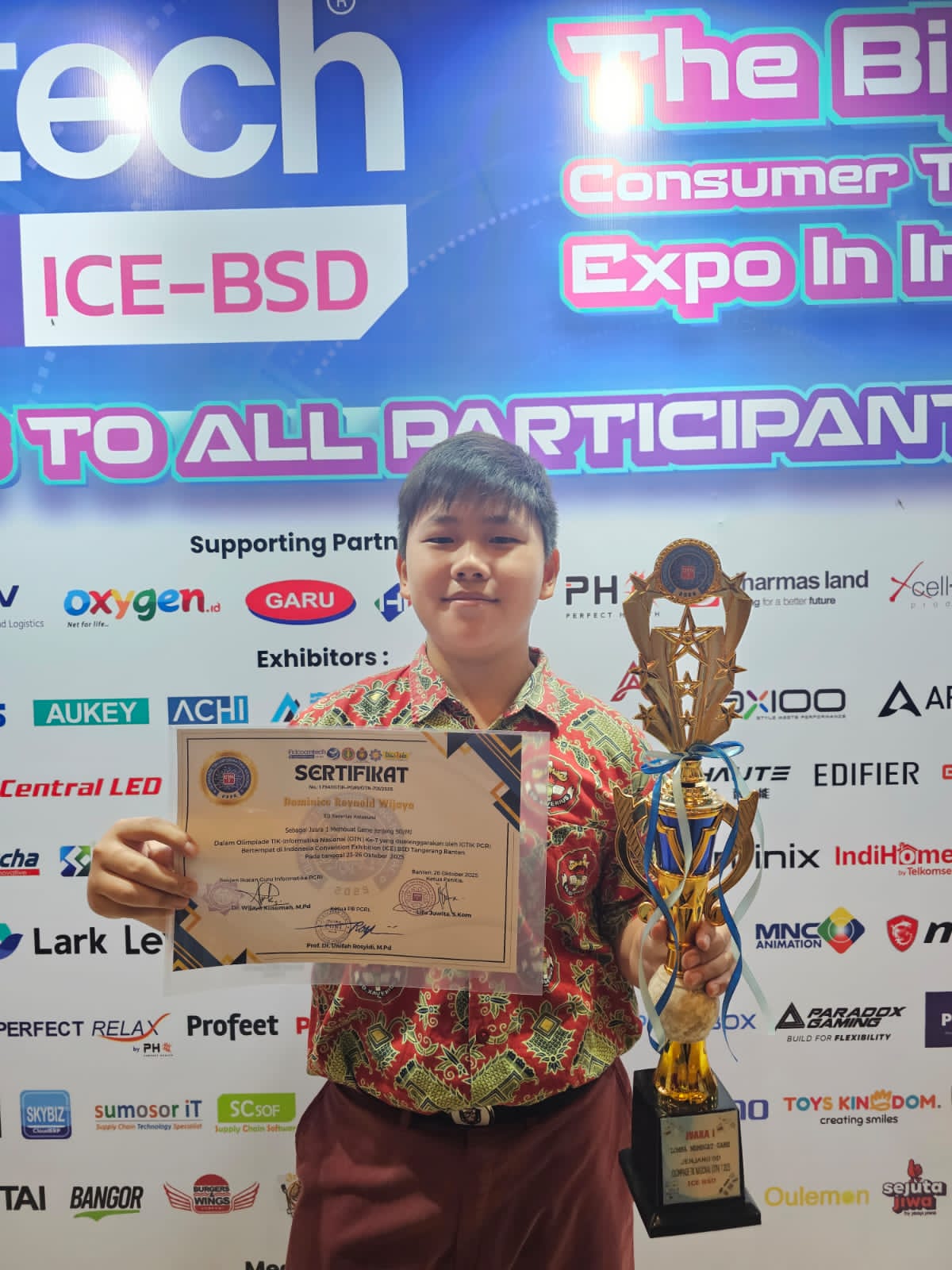 Banten (B+62) – Satu lagi prestasi membanggakan datang dari dunia pendidikan Lampung Utara. Dominico Reynold Wijaya, siswa kelas VI Sekolah Dasar (SD) Xaverius Kotabumi, berhasil mengharumkan nama daerah dengan meraih Juara 1 kategori Membuat Game jenjang SD/MI dalam Olimpiade TIK-Informatika Nasional (OTN) Ke-7, yang diselenggarakan oleh Ikatan Guru TIK dan Informatika PGRI (IGTIK PGRI) di ICE BSD, Tangerang, Banten, pada 23–26 Oktober 2025.