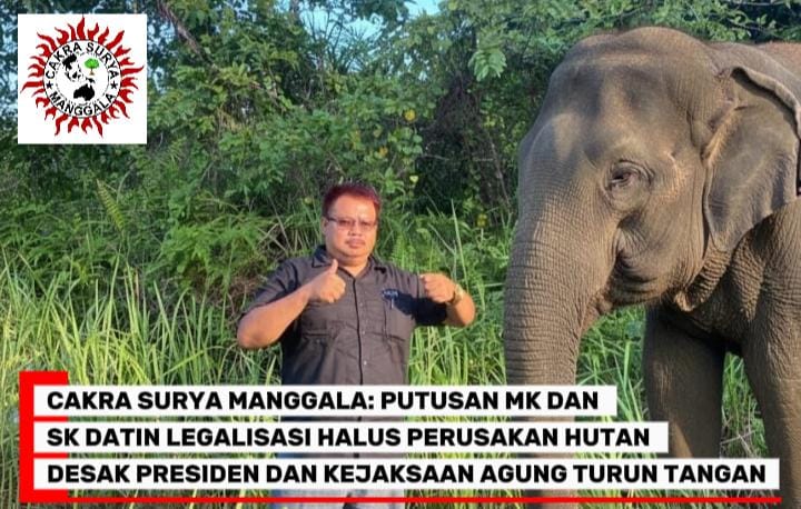Selain itu, Cakra Surya Manggala meminta Satgas Penertiban Kawasan Hutan (PKH) Kejaksaan Agung RI yang dipimpin Jampidsus Febriansyah untuk segera melakukan penyelidikan dan penindakan hukum terhadap pejabat atau pihak yang terlibat dalam penerbitan SK Datin di kawasan konservasi.