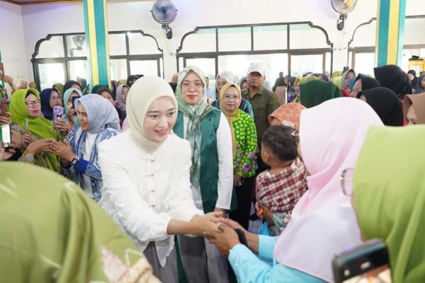 LAMSEL- Wakil Gubernur Lampung, Jihan Nurlela, meninjau langsung pelaksanaan Pasar Murah yang diselenggarakan oleh Pengurus Wilayah Muslimat Nahdlatul Ulama (PW Muslimat NU) di Halaman Masjid Jami Nurul Iman, Desa Tanjung Sari, Kecamatan Natar, Lampung Selatan, Minggu (23/03/2025).